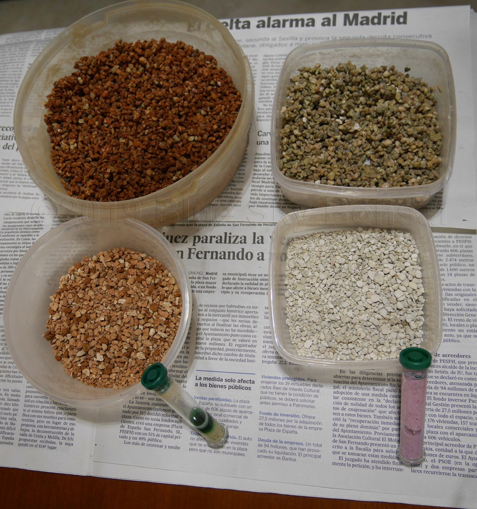 Dave’s Answer: I live in Spain and I bought the local supermarket “Al Campo” non-clumping cat litter, about 2 years ago – I bought about 10 large sacks of it. It is very similar to Sanicat Pink if you can get that, or Tesco dust-free cat litter. I tried a few different bags from different shops before I found this one. Other brands disintegrated too easily in water, or clumped together creating a mush. This year I went back to Al Campo to buy more of this pink type, and unfortunately they don’t sell it any more so I’ll have to go back to akadama + pumice.